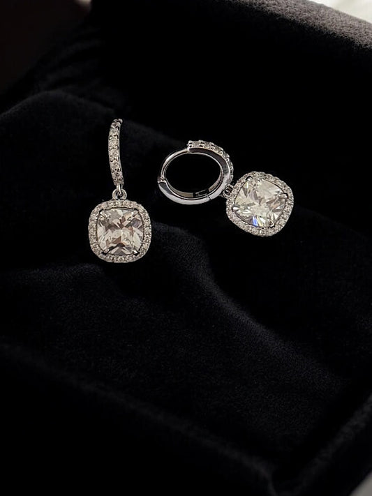 Drop Solitaire Sterling Silver Hoops