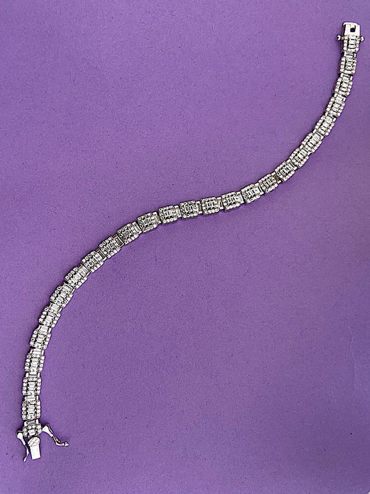 Round Baguette Sterling Silver Hoops Earrings