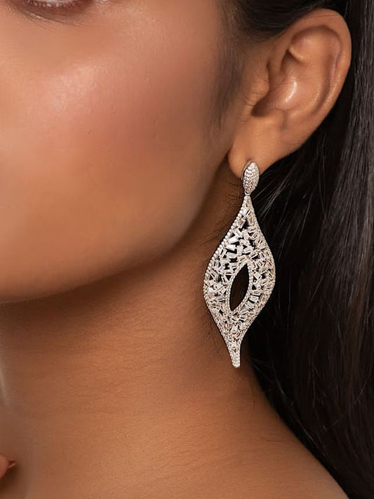 Silver Diamond Studded Chandelier Earrings