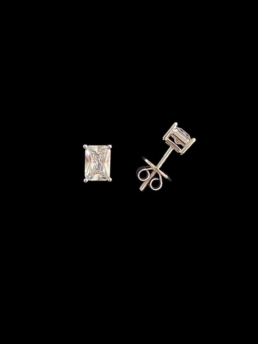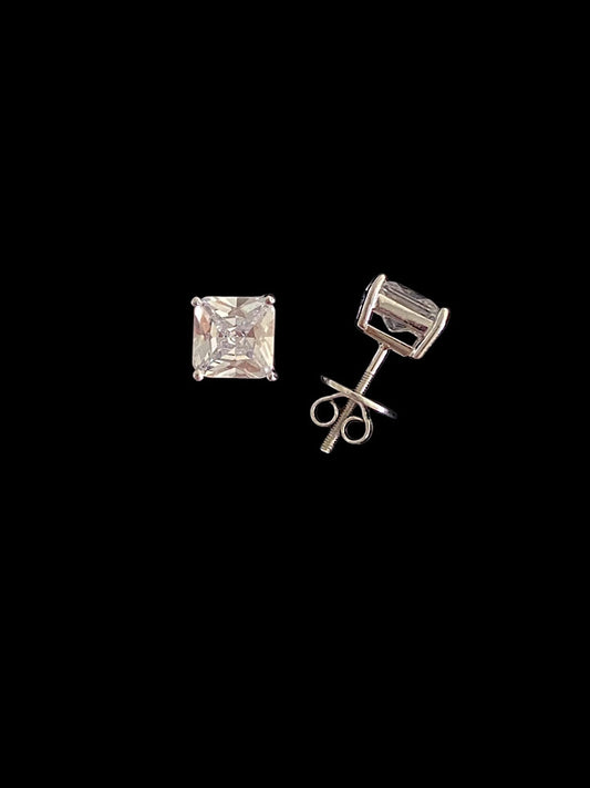 Princess Cut Sterling Silver Solitaire Studs With Screw Back