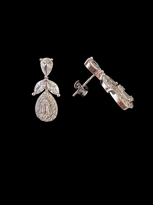 Sterling Silver Drop Solitaire Earrings With Screw Back