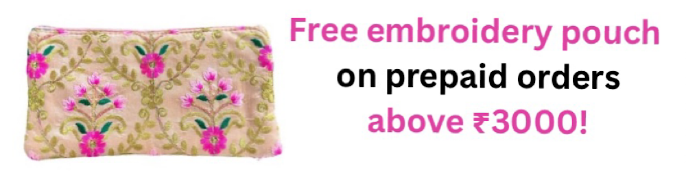 Free Embroidery Pouch On Prepaid Order Above Rs.3000