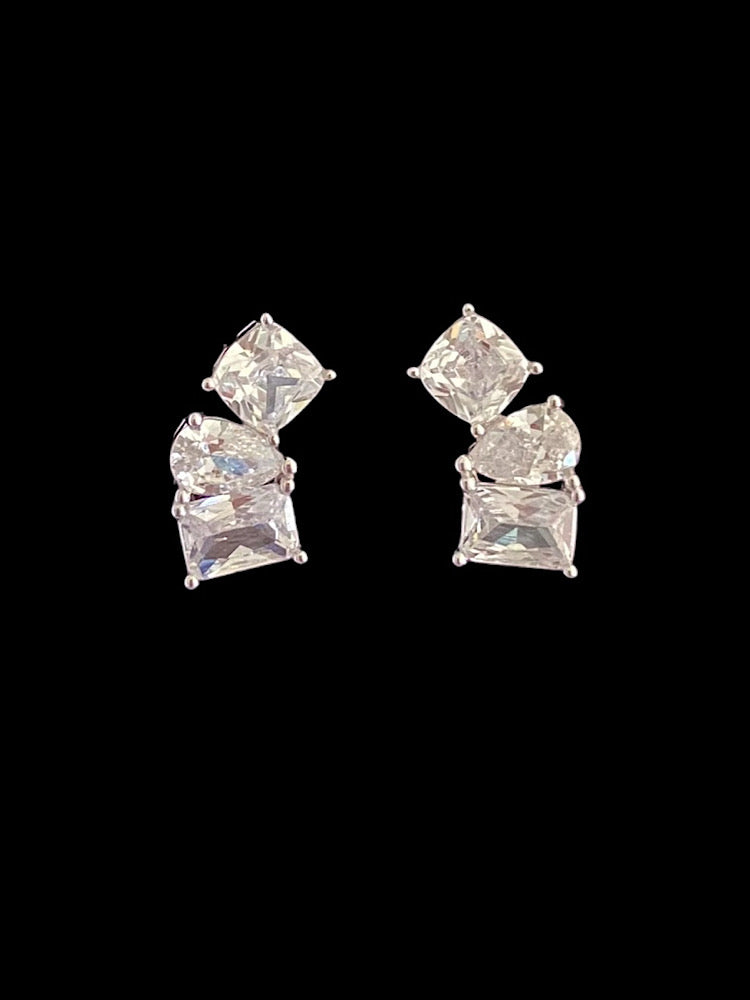 These solitaire studs are in different shapes and sizes. The pair makes lovely statement when worn on their own.